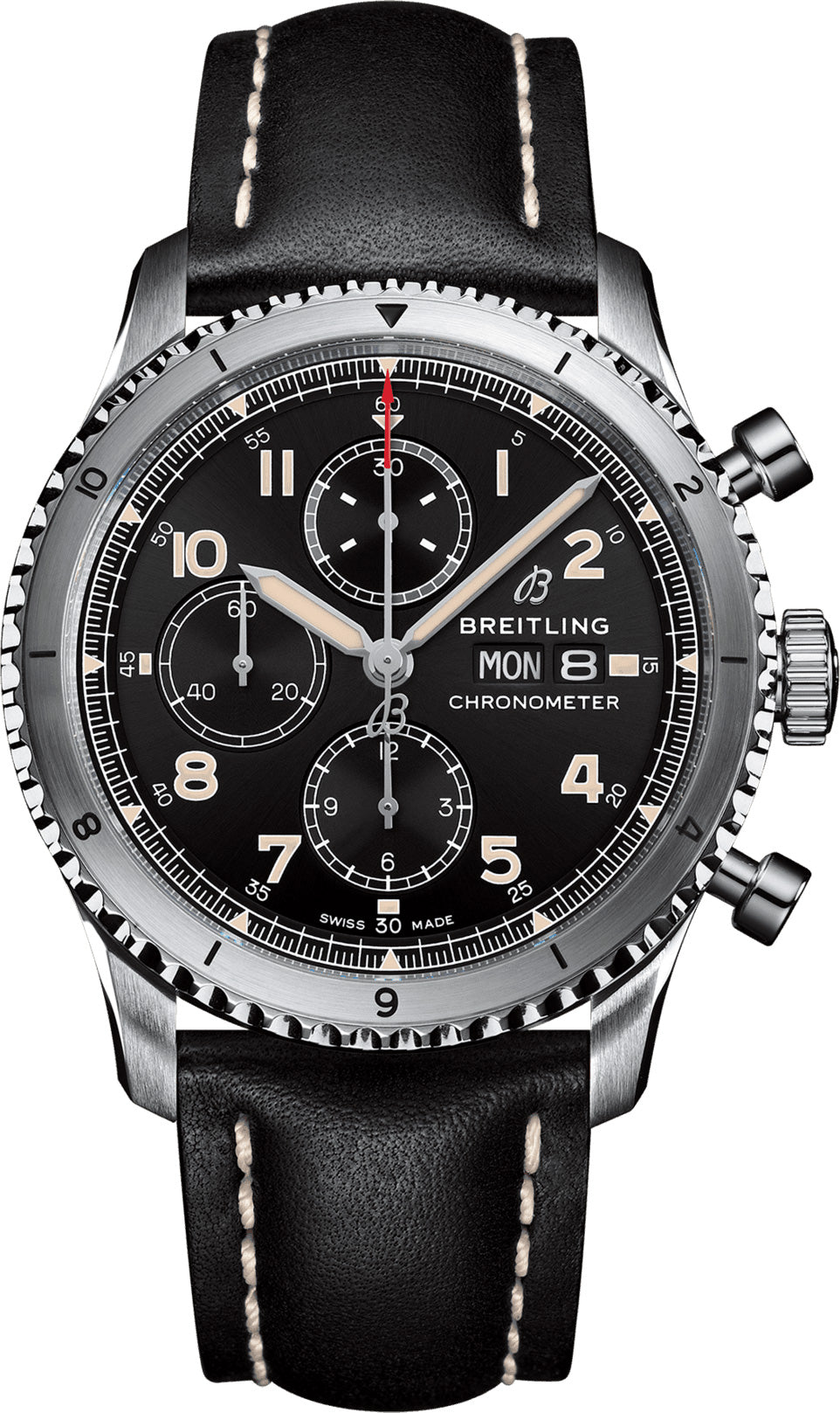 Breitling Watch Aviator 8 Chronograph 43 Leather Tang Type – Black