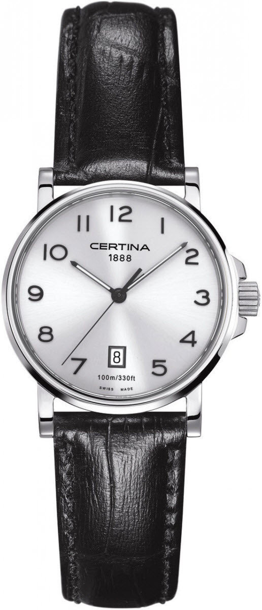 Certina Watch DS Caimano Lady Quartz C017.210.16.032.00. The ladies quartz models are as precise and reliable as the mens, with personalities ranging from the very sporty to the more classic and elegant. These watches are equally at home with evening wear, plain dress or in dramatic mountain bike descents. All feature high quality and durability in a dynamic design, thanks to a 316L stainless steel case, a sapphire crystal, water resistance up to a pressure of 10 bar and a proven ETA quartz movement.