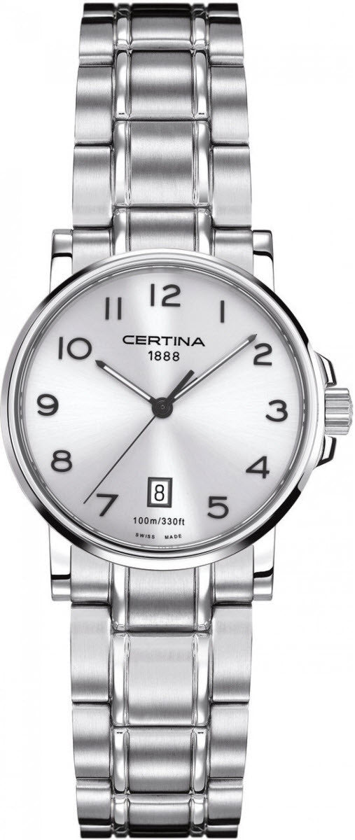 Certina Watch DS Caimano Lady Quartz C017.210.11.032.00. The ladies quartz models are as precise and reliable as the mens, with personalities ranging from the very sporty to the more classic and elegant. These watches are equally at home with evening wear, plain dress or in dramatic mountain bike descents. All feature high quality and durability in a dynamic design, thanks to a 316L stainless steel case, a sapphire crystal, water resistance up to a pressure of 10 bar and a proven ETA quartz movement.