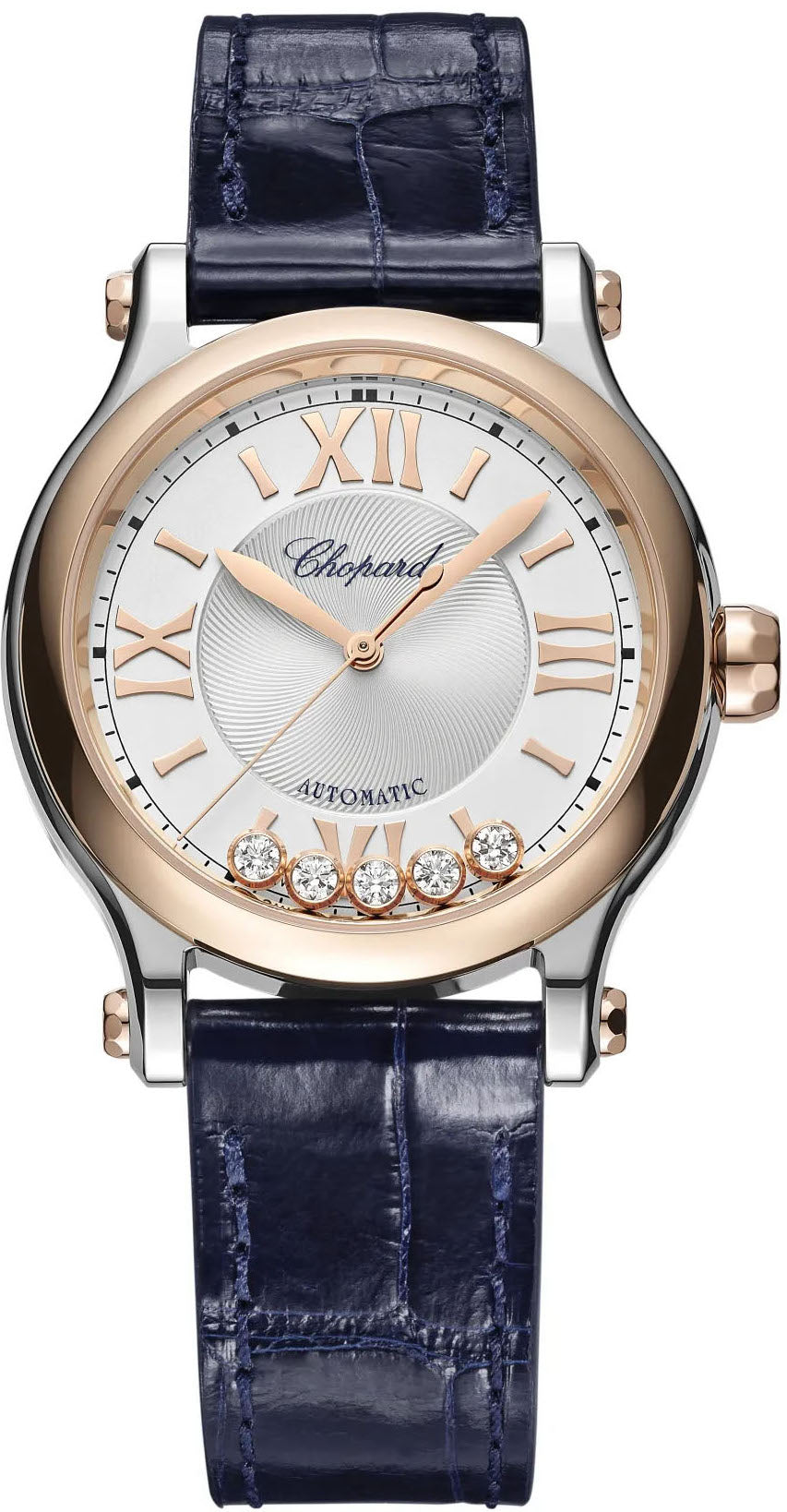 Chopard Watch Happy Sport 278608-6001. The Happy Sport collection is the emblem of Chopard’s creativity and boldness. Its playful, free-spinning gems, dancing between two sapphire crystals, have captured the imagination since 1993, when Chopard became the first Maison to combine steel and diamonds. Little Diamonds Do Great Things.