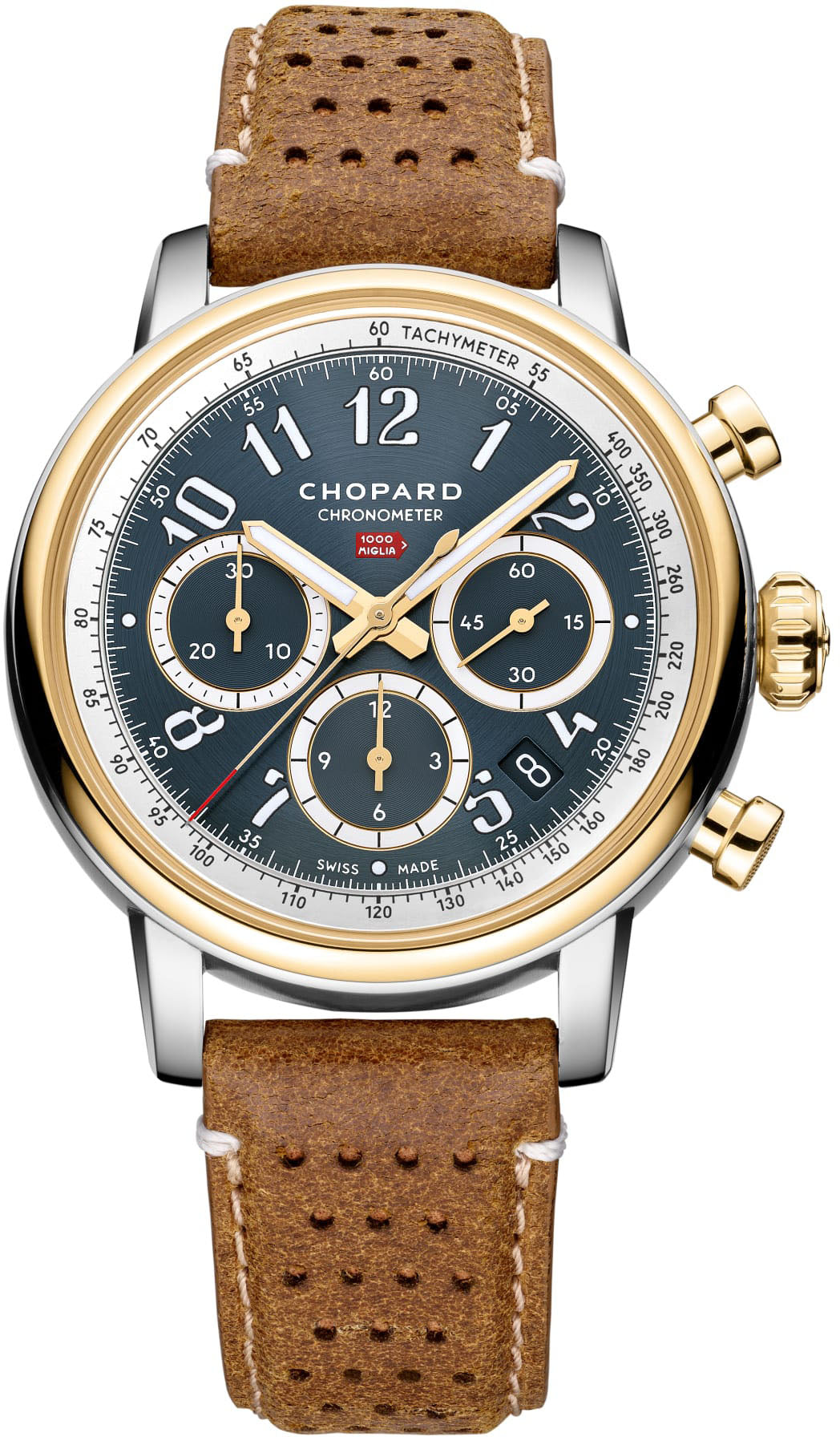 Chopard Watch Mille Miglia 168619-4001. For 35 years, the heart of Chopard and that of the 1000 Miglia have been beating as one. As the official timekeeper of the world’s most famous regularity race for classic cars, Chopard has created the Mille Miglia Chronograph watch. They share a love of beautiful engineering and performance, born of Karl-Friedrich Scheufele’s personal passion for cars and motor racing.