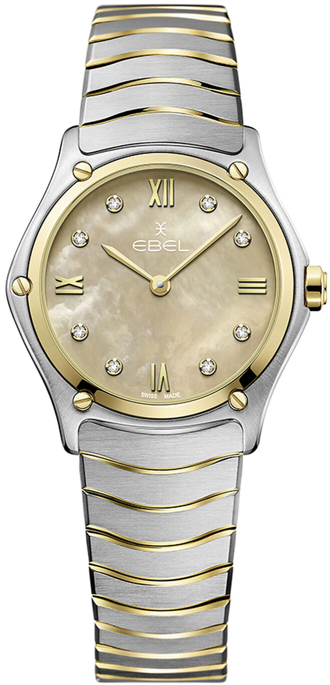 Ebel Watch Sport Classic Ladies 1216488A. Ebel Watch Sport. A dynamic personality with a disconcerting air of casual chic. Energetic, determined, disarming, Ebel watches Sport. The wave bracelet reinterpreted with sharply defined middle links. The contemporary hexagonal case with signature screw detail. Sporting character. Modern yet classic.