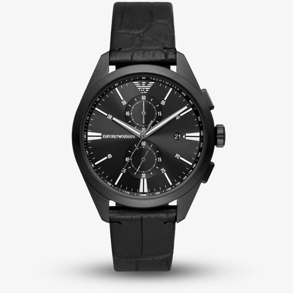Emporio Armani Mens Black Dial & Strap Chronograph Watch AR11483