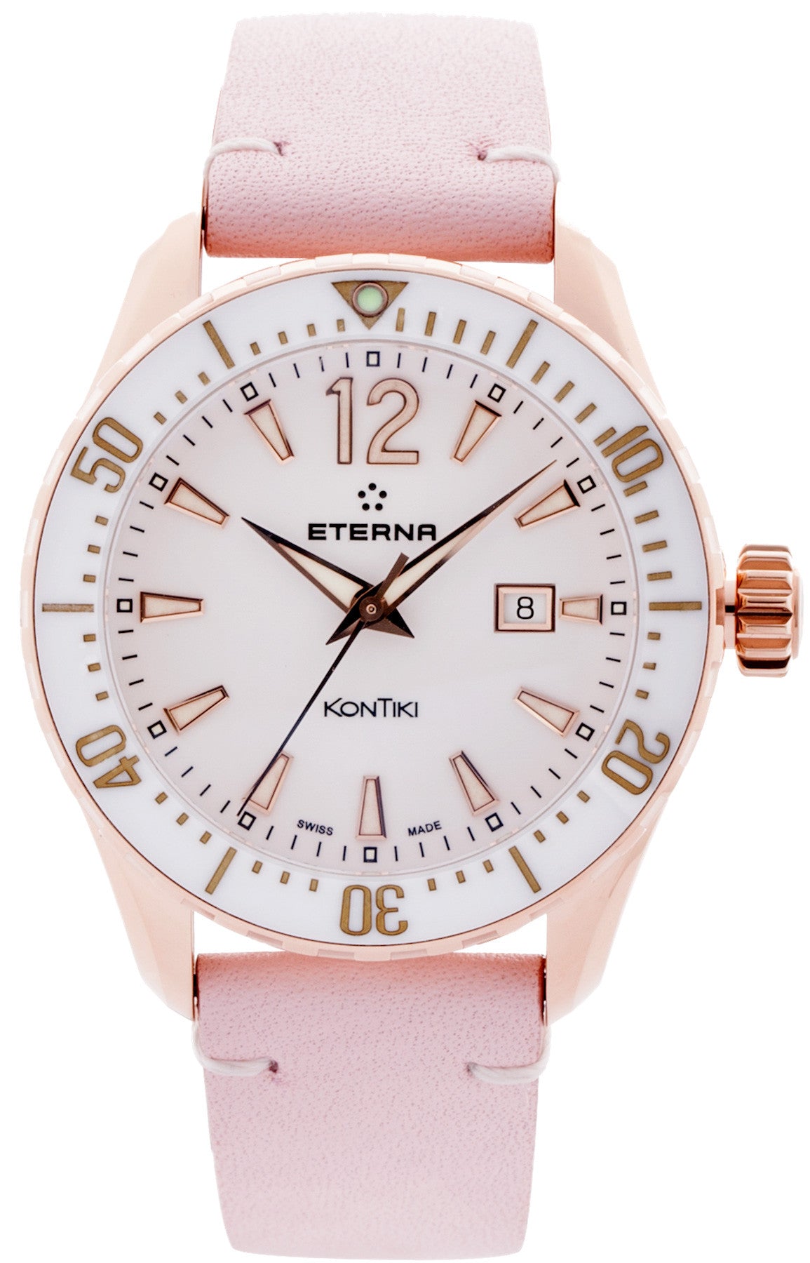 Eterna Watch Lady KonTiki Diver Quartz 1282.64.69.1420. The dive watch is usually considered a masculine timepiece, yet history shows that women have long been just as comfortable in the sea as men, from the Sirens and Naiads of Greek mythology to the mermaids that teased sailors, right up to pioneering twentiethcentury female divers like Sylvia Earle and Lotte Hass. So it stands to reason that women should get a worthy dive watch of their own. And not just one that adds a few diamonds to the dial either. Enter the KonTiki Lady Diver Quartz.