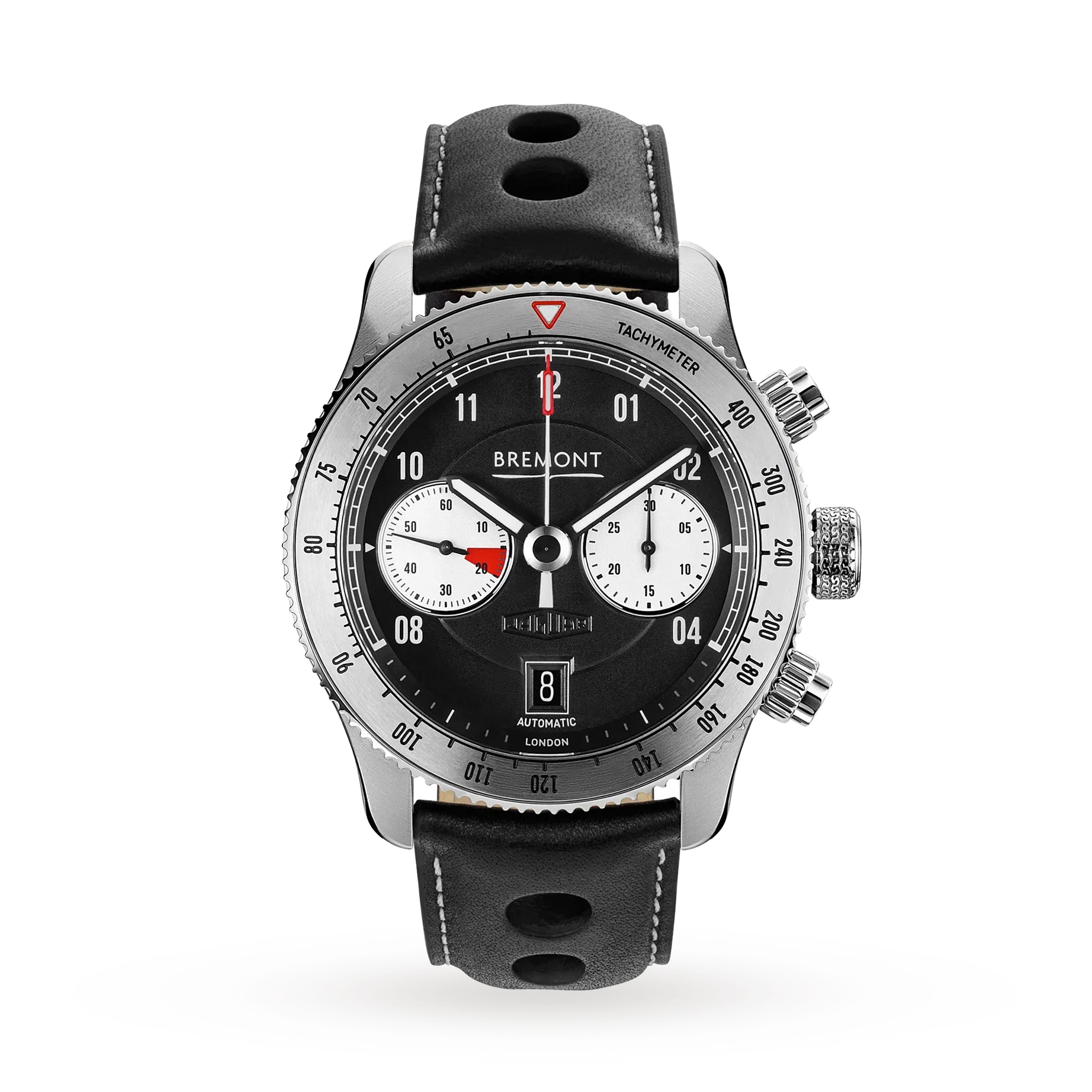 A contemporary take on a British motoring classic Inspired by the classic shape and design features of the iconic Jaguar C-type Presented in a 43mm steel Trip-Tick® case secured with a black leather racing strap Closed case back with a decorative Jaguar coin Driven by a modified calibre 13 BE-50AV for flawless performance A TRIBUTE TO THE ICONIC JAGUAR C-TYPE Bremont’s Motorsport collection pays tribute to the beautiful race cars made by the icons of British Engineering – from Williams F1 to Jaguar and Norton. Designed in partnership with companies who share the manufacturer’s ethos of high quality craftsmanship and a classic aesthetic, the collection is characterised by subtle design elements inspired by vintage motorsport. Designed by car designer, aerodynamicist, and artist Malcolm Sayer, the Jaguar C-type was truly iconic, with its fluid shape and pioneering technology. Celebrating the 70th anniversary of the C-type’s famous 1953 Le Mans success, where the model finished first, second, and fourth, this timepiece offers a contemporary take on a motoring classic. CLASSIC STYLE Inspired by the beauty and innovation of the 1951 racing car, this watch is presented in a 43mm steel Trip-Tick® case, with a scratch-resistant PVD treated case middle. The brushed finish of the bi-directional rotating tachymeter ring offers a visual nod to iconic disc brake of the C-type – the first ever race car to use the pioneering technology, still used today. Bringing together vintage details in a refreshing and modern way, the black multi-level dial features Bremont’s classic raised central section, a debossed Jaguar Heritage logo, white sub-dials at 3 and 9 o’clock, and red accents inspired by Smiths gauges. A modified calibre 13 BE-50AV ensures flawless performance and offers a 56-hour power reserve. Meanwhile, the closed case back reveals a decorative coin depicting the Jaguar Growler hood badge and the words “Jaguar Cars Ltd. Coventry.” A black leather racing strap completes the l
