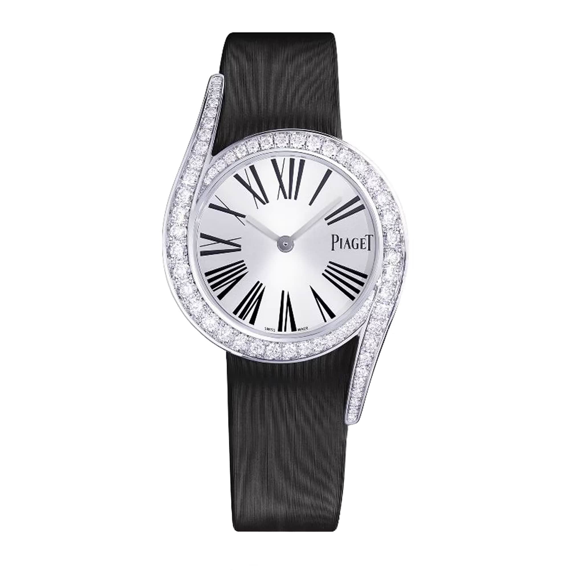 Founded in 1874 by Georges Edouard Piaget, Piaget is dedicated to desigining and producing high-precision timepieces. Georges Edouard Piaget began his work on the family farm, located in the small village of La CÃ’te-aux-Fées in the Swiss Jura mountains. Piaget develops its watch movements in-house, and has done so since 1874. This Piaget ladies’ timepiece from the Limelight collection showcases an elegant 26 mm 18ct white gold case and satin bracelet. The watch is powered by a quartz movement. This model is set with Roman numeral hour markers, a smooth set bezel, and sapphire crystal scratch-resistant glass for additional protection. Explore the full Piaget collection.