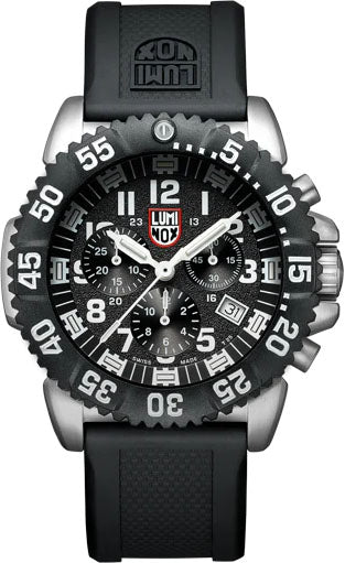 Luminox Watch Navy Seal Steel Colormark Chronograph 3180 Series XS.3181.F. Watches from the Navy SEAL series are officially licensed by the United States Department of the Navy. The U.S. Navy SEALs’ suggestions were factored in when designing the watches. They have the best readability under any conditions on land, air or sea.