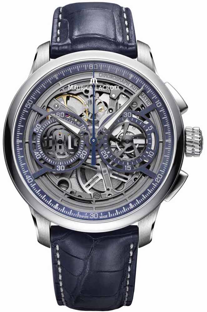 Limited Edition of 100 Pieces. Maurice Lacroix Watch Masterpiece Skeleton Chronograph Limited Edition MP6028-SS001-002-1. In life when we meet an individual who freely shares their personality and readily displays their character, we describe them as open hearted and admire their honesty. The same also applies in watchmaking. In this domain, Maurice Lacroix has vast experience creating thought provoking, open worked, skeletonised watches, which freely show the movement components within.