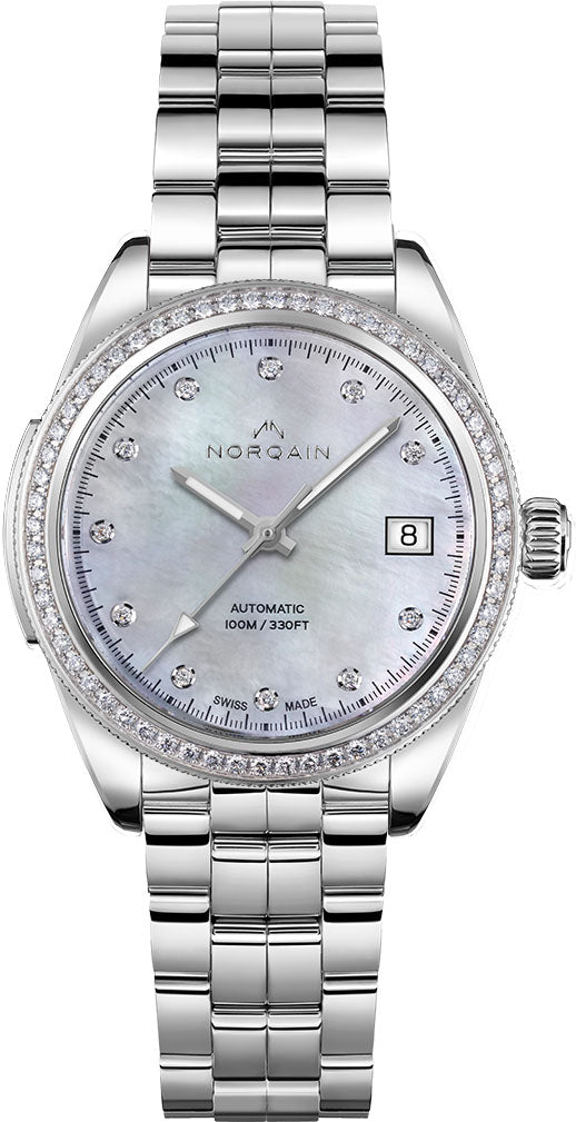 Norqain Watch Adventure Sport Steel N1800D81A/M18D/18CM.16S. The Adventure line embodies the thrill of exploring and conquering nature’s playground – the trails, the summits and the tides. The robustness of these powerful watches prepares them for whatever nature throws your way. The signature NORQAIN dial pattern, rotating bezels and uniquely sturdy construction make the NORQAIN Adventure timepieces equipped for a lifetime of adventurous moments. The Adventure collection has a strong character that speaks to sporty allrounders who are always on the search for a new challenge.