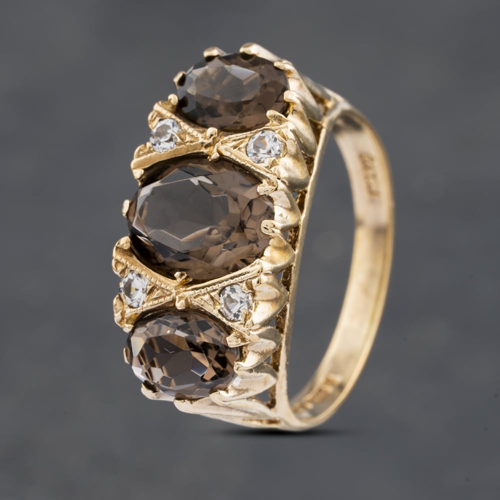 9ct Yellow Gold Smokey Quartz & White Spinel Seven Stone Ring Width: 9.7mm Weight: 4.2g Pre-Owned Jewellery is a diverse collection made up of unique, one-off pieces. All of our items are assessed by our team of experts and we are constantly working hard to ensure we bring you the very best quality and value. Each piece also comes with our 12 month warranty for your peace of mind. Click here to view our entire Pre-Owned collection Alternatively, to make enquiries or view items in person please call or visit your local T.H. Baker store. Click here to find your nearest store