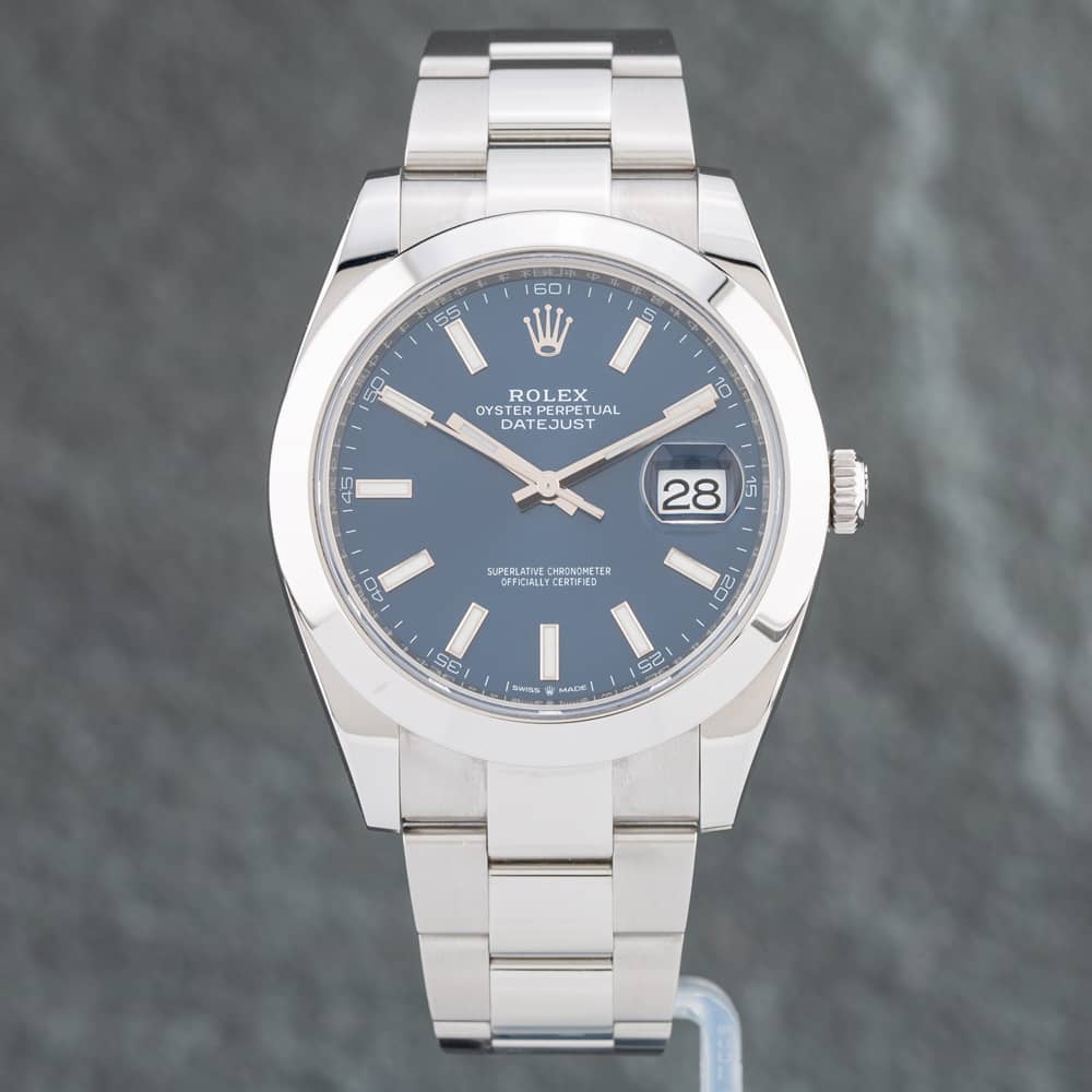 The Rolex Datejust 41 Watch combines a round shaped stainless steel case and silver plastic strap with a fold over clasp. The rose gold 41.0mm case measures 12.0mm thick and has a silver stainless steel fixed bezel with a screwed in case back and a lug width of 19mm. The blue analogue dial is protected beneath scratch resistant sapphire crystal glass and has baton hour markers, as well as luminescent hands, and a date display. Power is generated by the chronometer certified automatic movement with 31 jewels and a power reserve of up to 70 hours. The watch weighs 134.4 grams and has a water resistance of up to 100 metres. – Model Number 126300 – Serial Number *****568 – Year of Manufacture 2021 This watch is supplied with its original box and paperwork. The Jewel Hut are giving you the opportunity to purchase a prestigious Pre-Owned Rolex watch at an affordable price. The authenticity of our Pre-Owned Rolex collection is verified by industry experts, and comes complete with Rolex presentation box, professionally refurbished to the highest possible quality and standard. Click here to view our entire Pre-Owned Rolex collection Alternatively, to make enquiries or view items in person please call or visit your local T.H. Baker store. Click here to find your nearest store