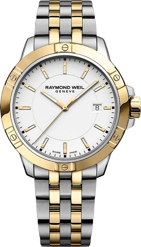 Raymond Weil Watch Tango Classic Quartz 8160-STP-30041. The tango collection for men embodies the passion that RAYMOND WEIL, the Swiss watchmaker, puts into achieving timepieces of both aesthetic sensuality of design and rhythmic perfection. Distinctive style with a balance of proportions, the RAYMOND WEIL tango collection is easily recognised by its distinguishing signature bezel and six decorative screws. The gent’s collection features a quartz movement for timing precision and is available in a chronograph dial, giving it a sporty look or a traditional dial for everyday use.