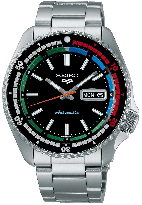 Seiko Watch 5 Sport Regatta Timer SRPK13K1. The ‘New Regatta Timer’ Seiko 5 Sports Retro Colour Collection The design of this watch pays tribute to the popular Seiko 5 Sports watches from the late 1960s which were a firm fan favourite. The overall look is a combination of newness and heritage – with the dial and the hands being new designs, common to this Retro Colour collection. The case is based on the SKX series case, whilst the bezel resembles the original 1960s models. It has ‘Special Edition’ engraved on the case back. This particular timepiece is inspired by the 6119-6050 – the original ‘Regatta Timer’ released in the late 60s. Seiko 5 Sports watches are known for over fifty years of reliability, durability, performance, and value. ”5” represents the original five key features of every Seiko 5 still present today: Automatic movement, Day-date display, Water Resistance, Recessed crown and Durable case and bracelet.