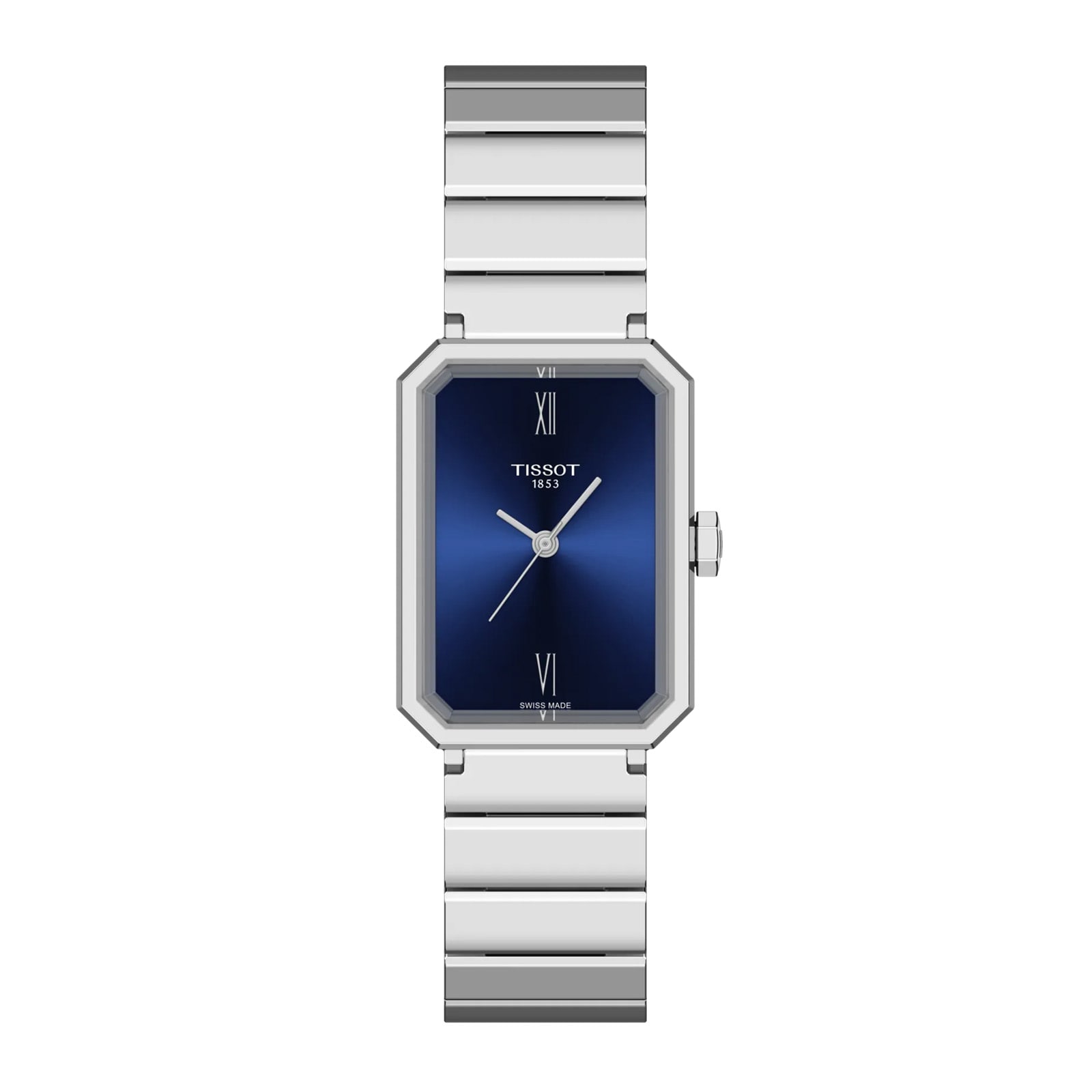 The SRV watch is inspired by Art Deco, a distinctive style which flourished in the 1920s. Characterised by geometric shapes and abstract patterns, it became a dominant style in architecture, interior design, fashion and graphic arts. While the SRV is directly inspired from a model from 1975, that very design was itself a reinterpretation of Tissot’s earlier creations from the 1920s. SRV stands for Sapphire Rectangle V, the perfect name for a faceted sapphire glass with a rectangular silhouette, and a 5-bar water resistance, symbolised by the roman number 5. Its quartz movement delivers reliable precision while the End-Of-Life indicator lets you know when it’s time for a battery change. The metal bracelet is comfortable, robust, easy to clean and long-lasting.