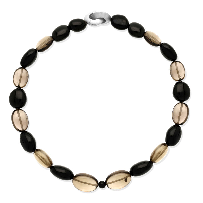 Sterling Silver Whitby Jet Smokey Quartz Bead Necklace D – Silver