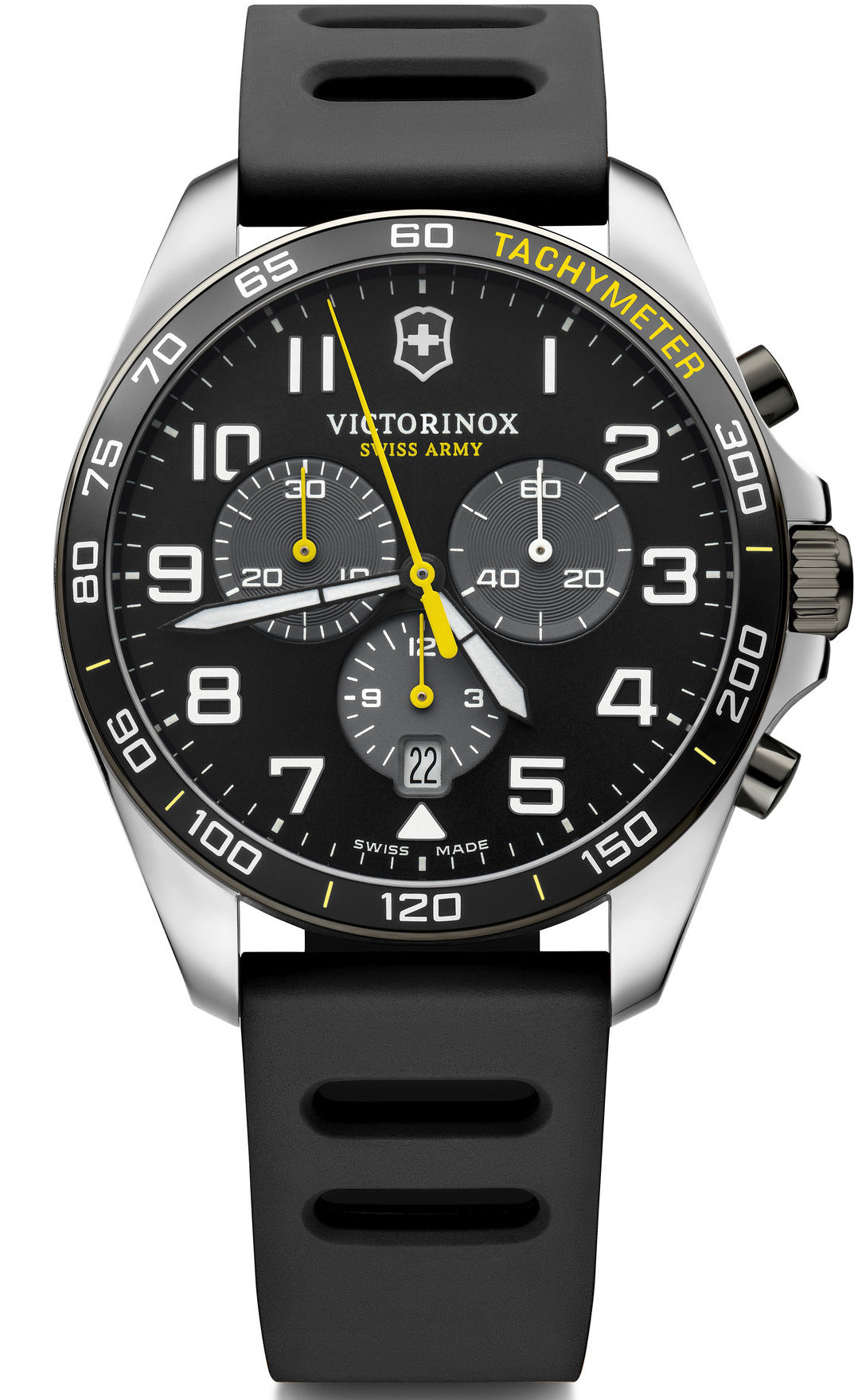 Victorinox Swiss Army Watch FieldForce Sport Chrono 241892. Where form, accuracy and functionality fuse in effortless style. Streamlined and sleek, these timepieces are truly timeless and can handle any challenge, anytime, anywhere. Tough, rugged and with a distinctive, sharp aesthetic, they epitomise the essence of contemporary masculinity.